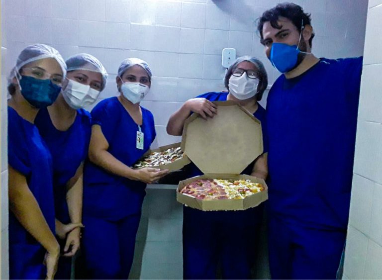 ...Profissionais do plantão noturno da Santa Casa de Misericórdia de Sobral ganham pizza