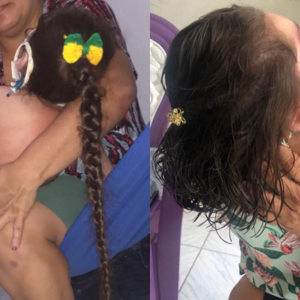 ...Criança de sete anos doa os cabelos para pacientes com câncer na Santa Casa de Sobral